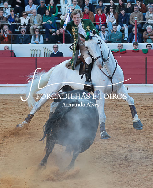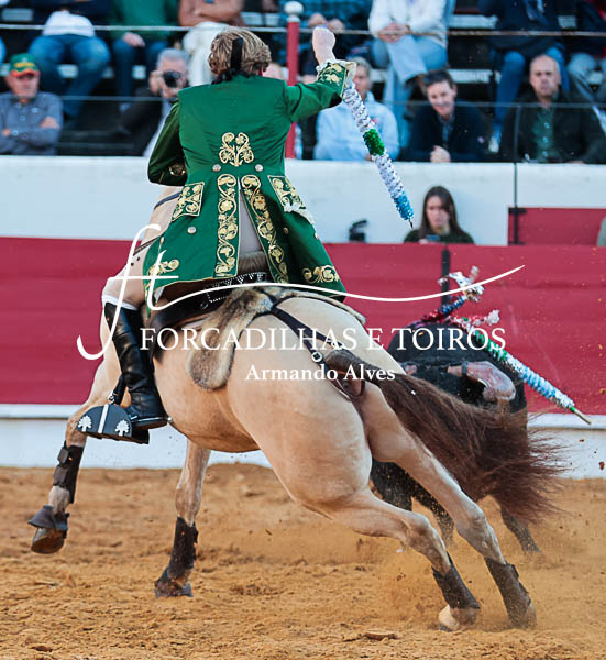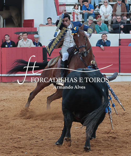 Tristão Ribeiro Telles apresentou-se também com uma vistosa sorte gaiola e com a entrega que o caracteriza, protagonizando uma lide positiva, ainda que sem atingir maior expressão, talvez pelas distâncias exigidas ao toiro.