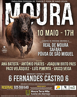 Realiza-se no próximo dia 10 de maio pelas 17h em Moura a tradicional corrida de toiros.